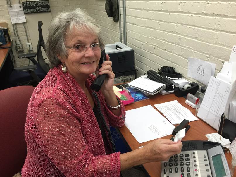 Photo cutline: Mary Mister makes calls to library patrons, one of a number of places Mister volunteers with the Retired Senior and Volunteer Program, a United Way Member Agency.